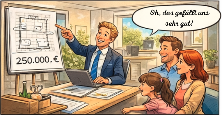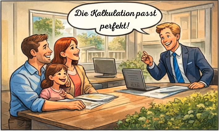 Jetzt wird es konkret. Die Familie sieht nicht mehr nur Zahlen oder Grundrisse – sie sieht ihr zukünftiges Leben.